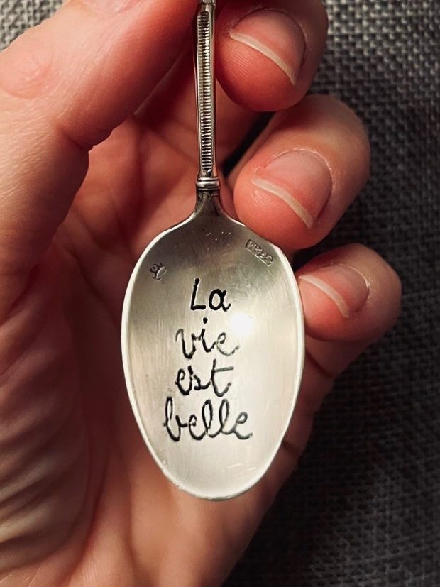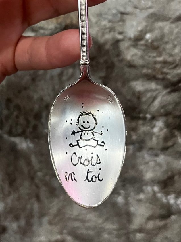(monochrome + message gravé dans la cuillère (sans personnage)