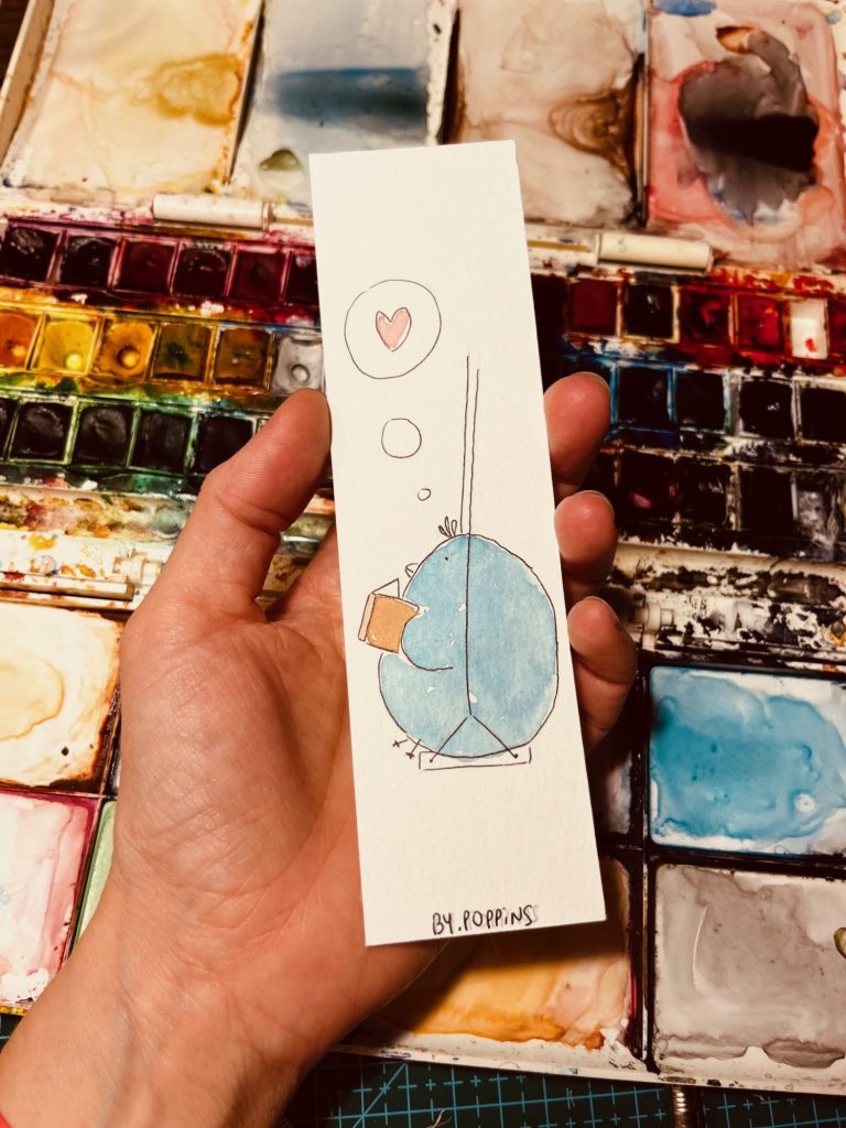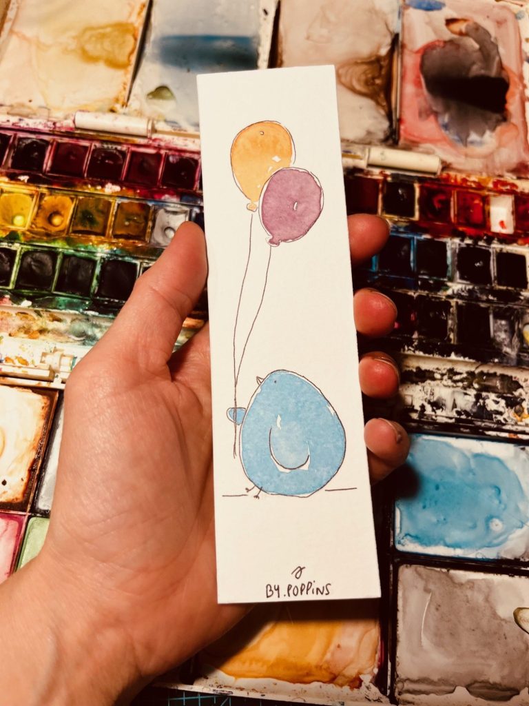Un dessin d'oiseau délicatement mise en scène à l'aquarelle, sur un papier canson